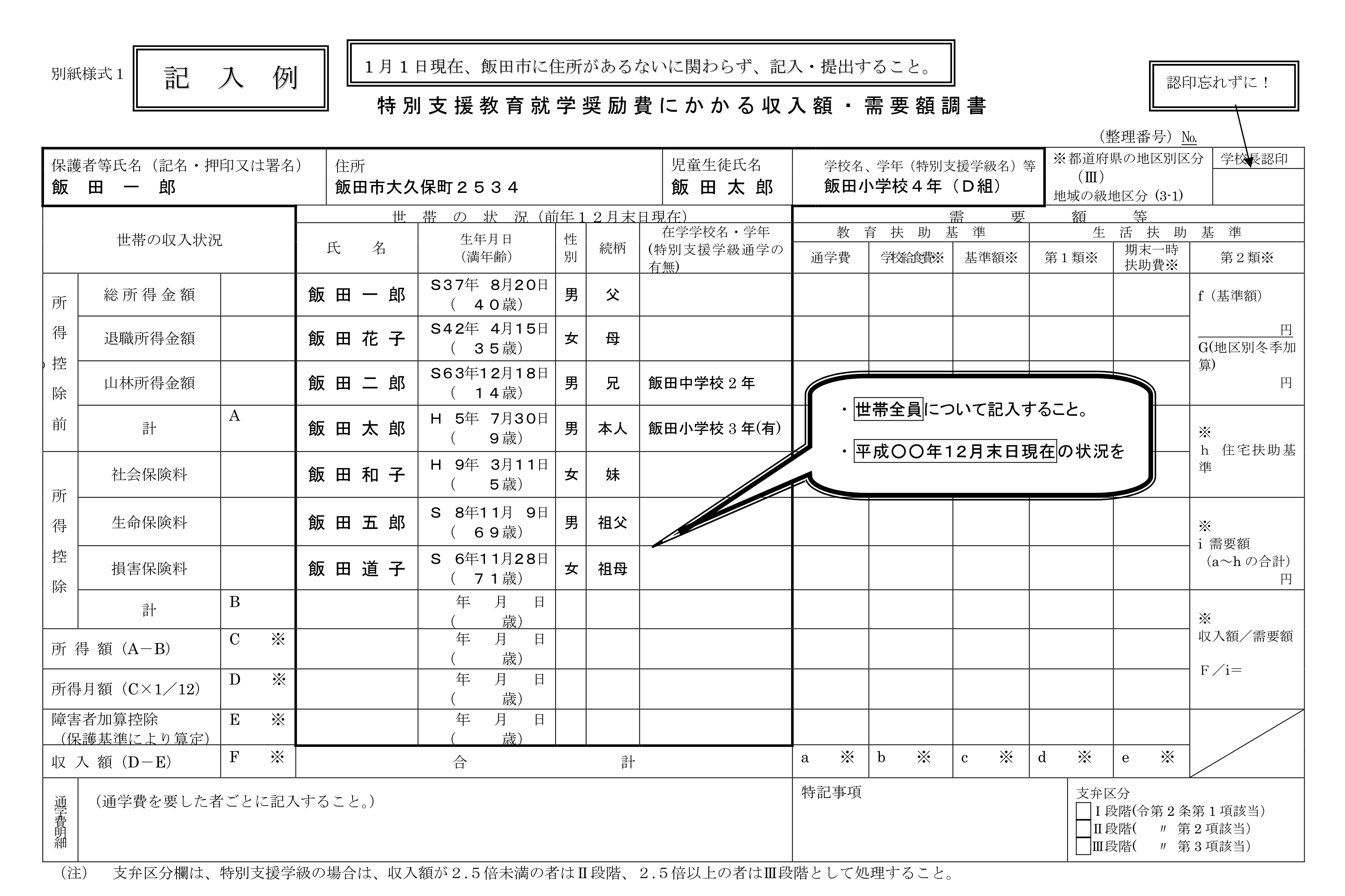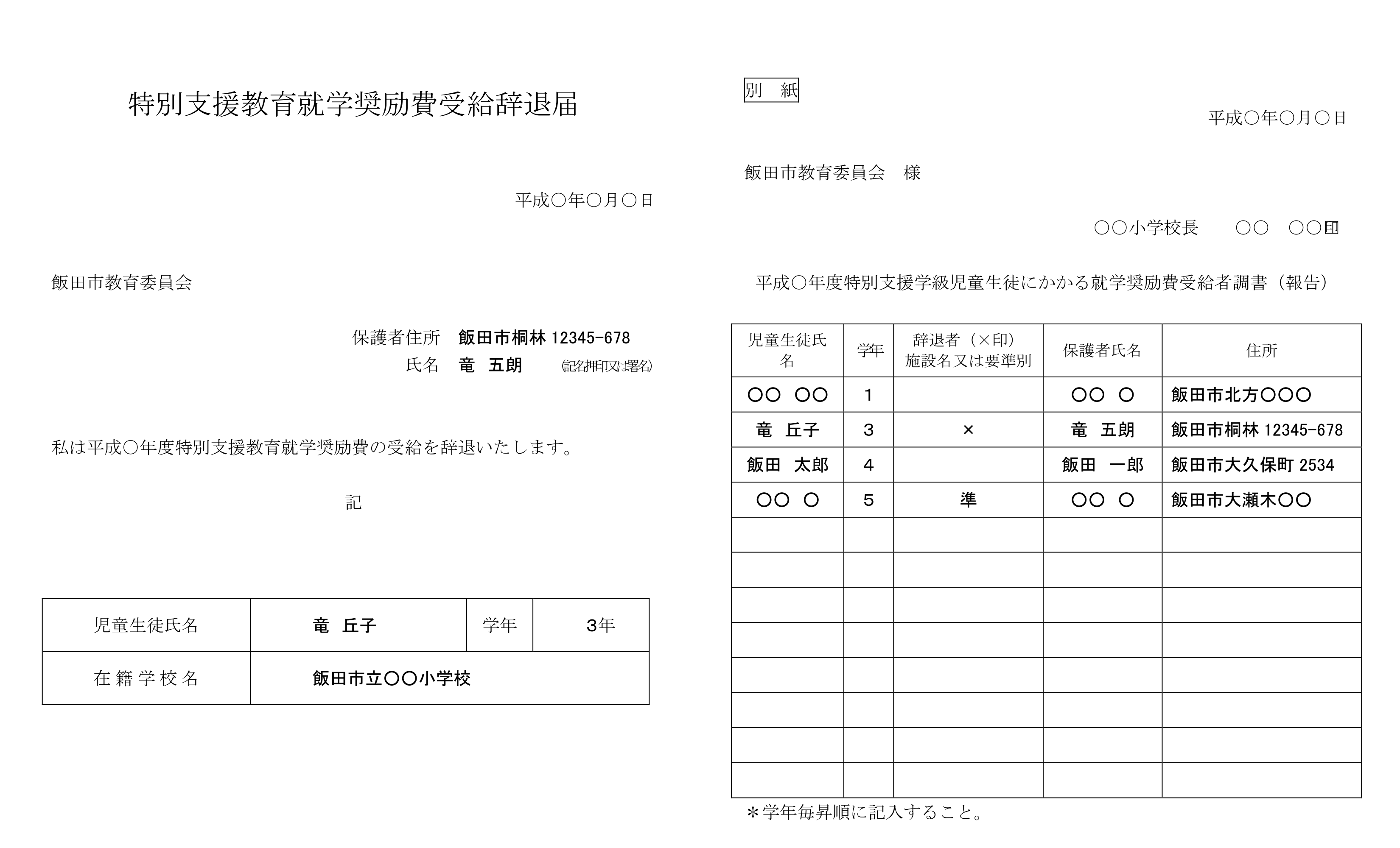 なお、飯田市に住んでいる者でも、特別支援学校へ就学している児童生徒については、県教委の扱いとなり、在籍する特別支援学校にて支給される。