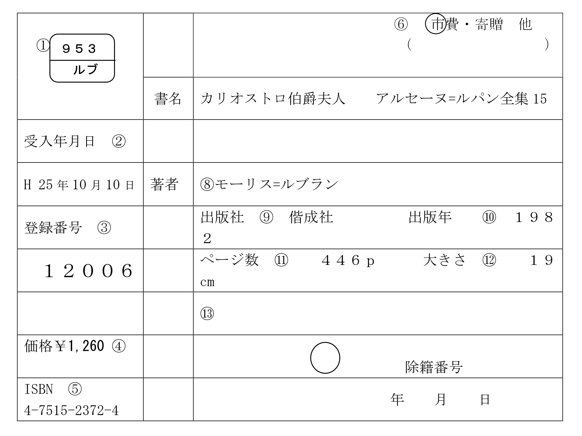 ① 受入年月日 図書を受入した日とする。図書、カードにも同じ日付を入れる。