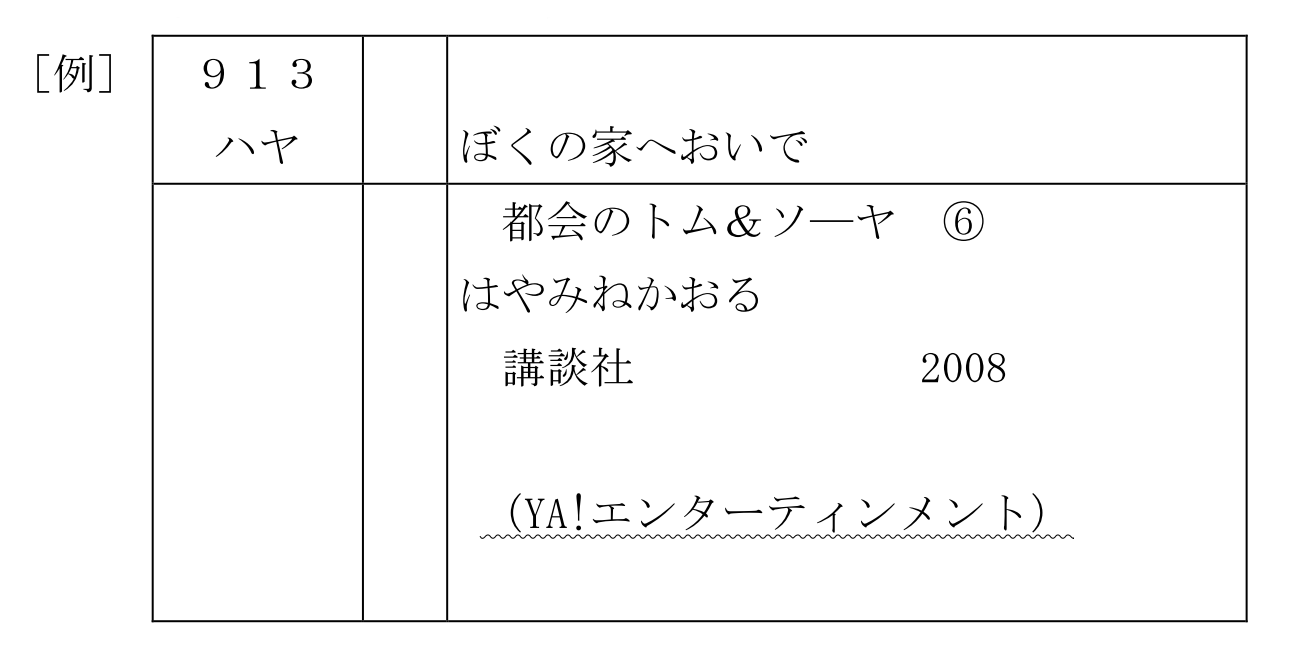 ※この通りにならない場合もあるかと思いますが、基本的に分類番号は客観的かつ公平に、主題によって分けるのがベターです。