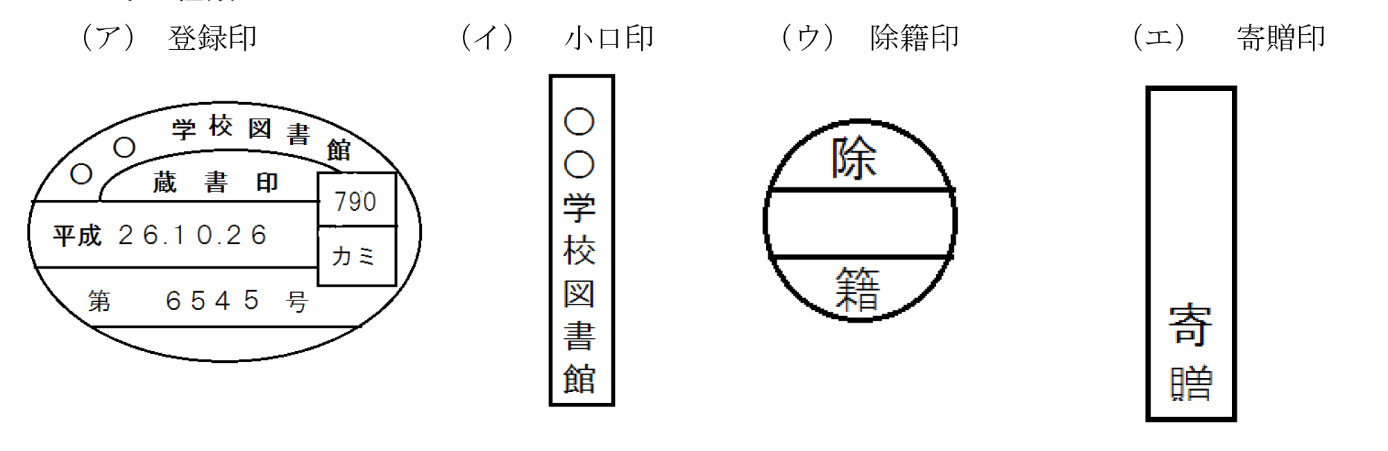 (ア)各学校の図書館に用意するもの (⑥~⑨の印見本はP10-39を参照)