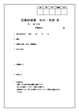 金額は1冊割りの金額とする。紛失した場合には1冊として数える。また、台帳に記載されている順に通し番号をつけ、除籍した図書の登録番号は永久欠番にする。