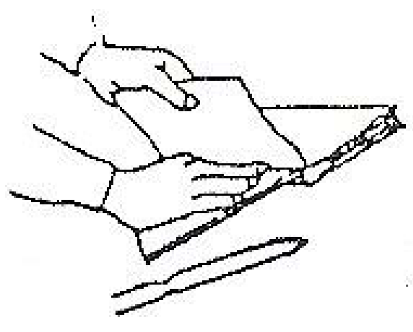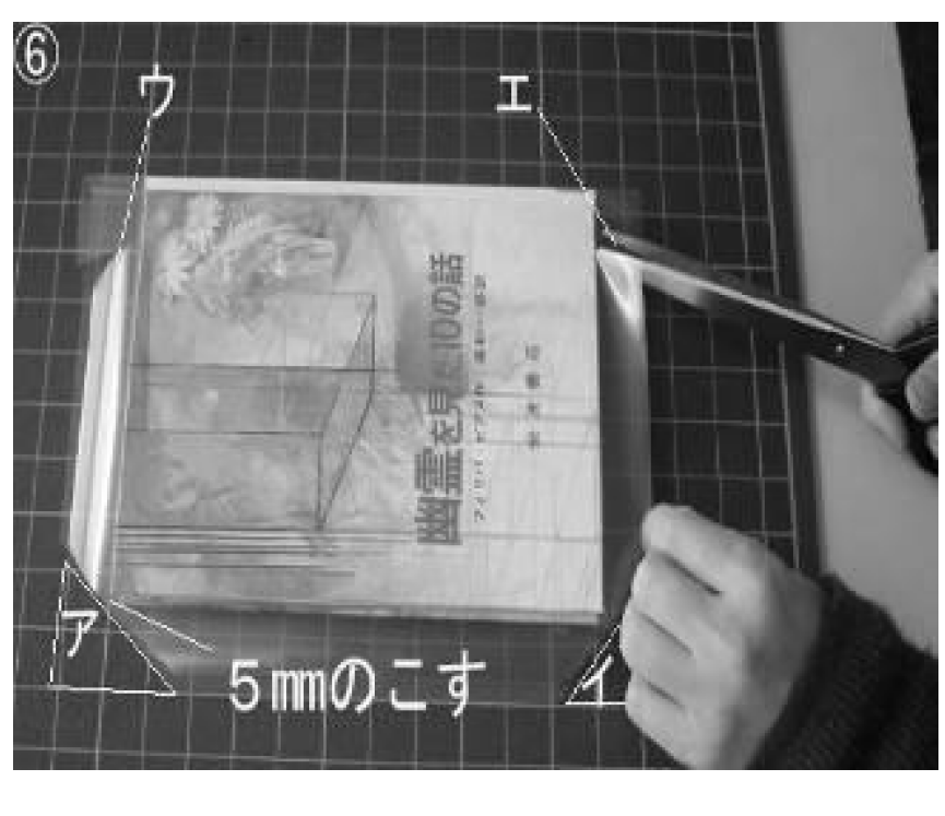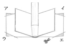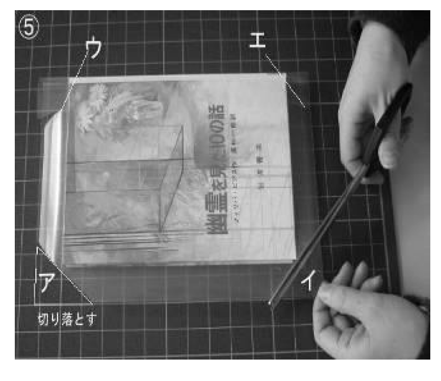 (ウ)図書の登録印の上に赤で除籍印を押す。