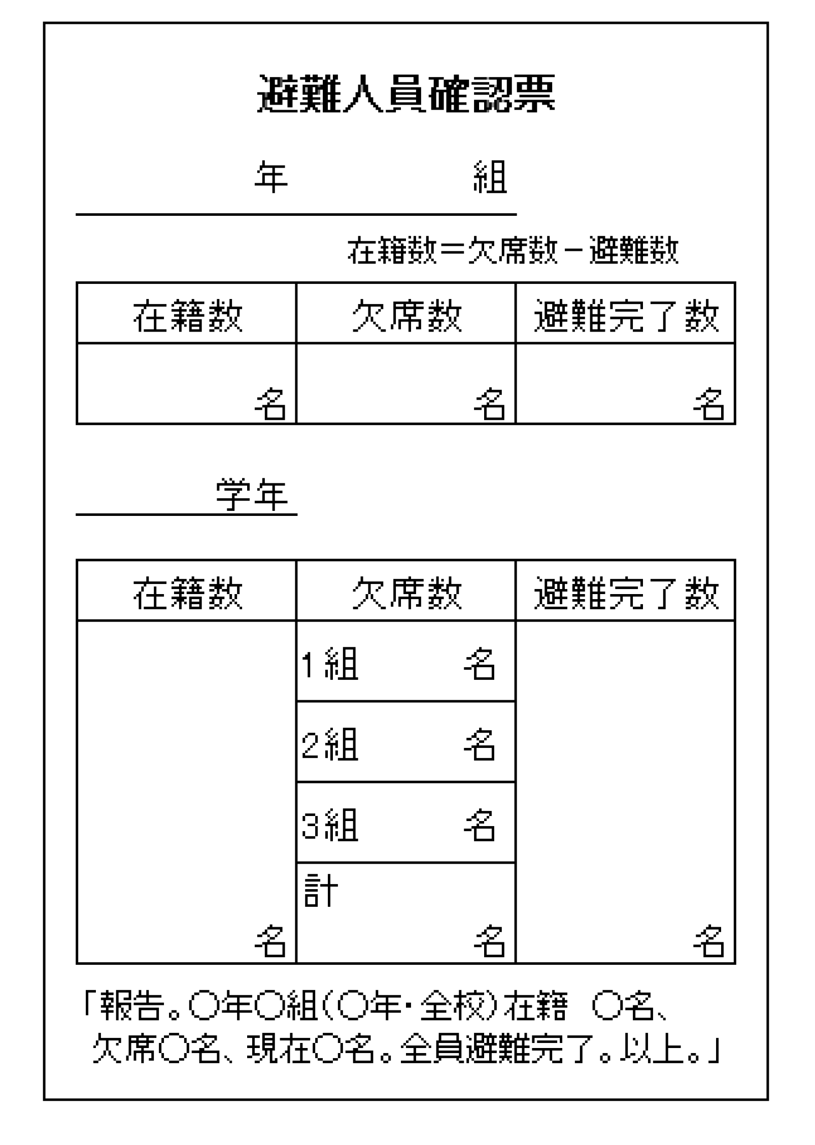 1 各学級個票(非常時報告用紙・例)